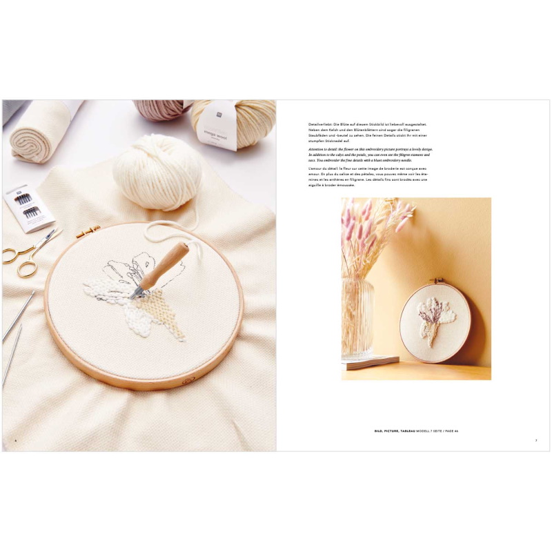 In het mooie boek Punch Needle Transformation van Rico Design staan 25 sfeervolle patronen van bloemen, bladeren en abstracte vormen voor kussens, wandhangers en tassen. De ontwerpen staan op ware grote gedrukt op de patroonvellen. Deze kun je eenvoudig op je stof overtrekken, om vervolgens te gaan punchen. De kleurkeuze en vormen maken het geheel sfeervol.