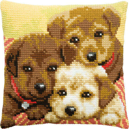 Borduur een mooi kussen met dit complete borduurpakket 'Puppies' van PAKO. Het patroon is voorgedrukt op stramien. Doordat dit pakket het benodigde garen en een wolnaald mee levert, kun je direct beginnen. Combineer het kussen met een ander borduur- of knoopkussen zoals deze Golden Retriever borduurkussen of dit knoopkussen Hondjes.