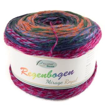 Met deze unieke garencake Rellana Regenbogen Mirage Royal kan jij zelf een prachtige veelkleurige omslagdoek haken of breien met een totaal nieuw effect! Je hebt maar 1 bol nodig voor een omslagdoek.