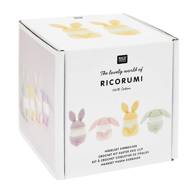 Met het Ricorumi eierwarmers haakpakket haak je zelf 4 konijntjes voor je eieren, om op tafel te zetten tijdens pasen. Leuk om te doen met kinderen of als je zelf een beginner bent is dit haakpakket ook leuk om mee te starten.