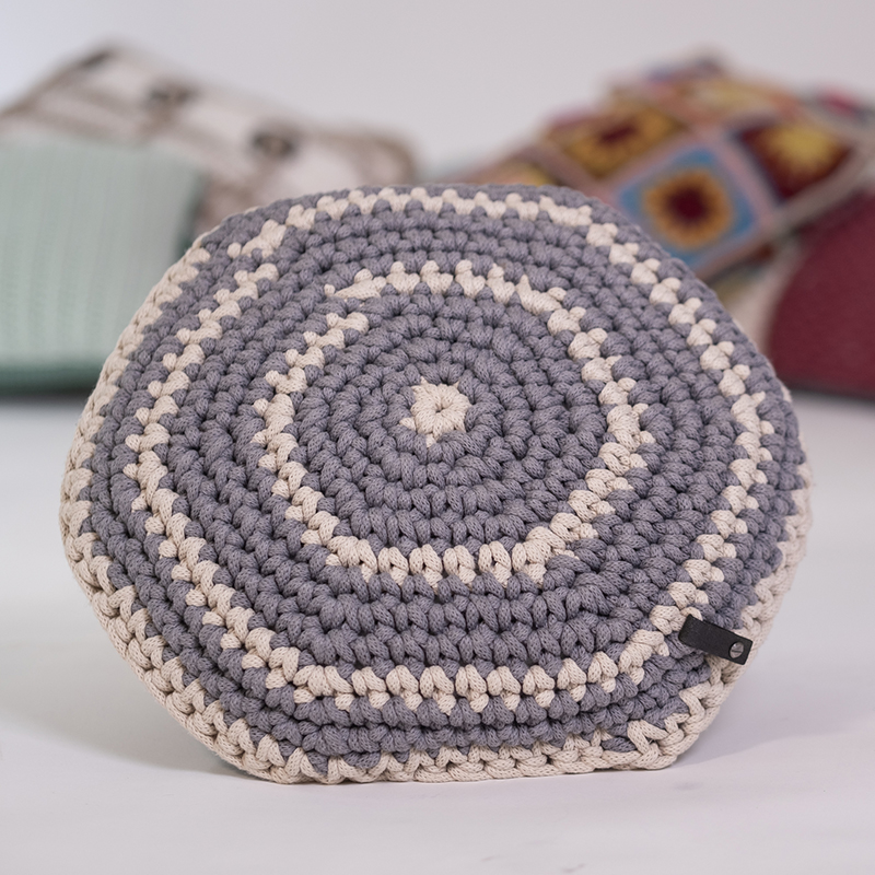 Dit stoere Rond kussen haken met het FairMade haakpakket is leuk én eenvoudig. Het kussen wordt ca, 40 cm en je haakt beide zijdes. Wil je liever één kant gehaakt? Dan kun je met dit pakket dus 2 kussens haken. Het rechthoekige kussen wordt gehaakt met het dikke garen DMC Nova Vita op haaknaald 10 mm.