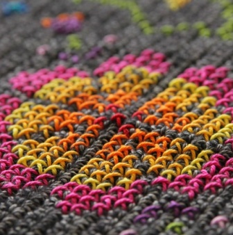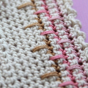 De basis van dit ontwerp wordt gehaakt met Scheepjes Stone Washed. Daarna worden er met contrasterende kleuren van het Scheepjes Catona garen, mooie motieven op geborduurd of met een speciale techniek op gehaakt. Zo onstaat er een spannend geheel.