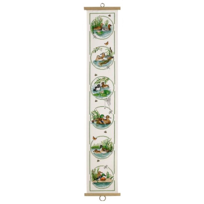 Deze prachtige wandhanger / schellekoord 'Eenden' van Permin of Copenhagen, borduur je met kruissteek en stiksteek op borduurstof. Het borduurpakket bevat het telpatroon, borduurstof, een borduurnaald en voldoende borduurgaren. Erg leuk tafereel voor in je kamer of veranda of leuk om cadeau te geven. Om het af te maken combineer met een bijpassend borduurkussen zoals deze libelle. Of kies je liever een knoopkussen zoals deze eendjes.