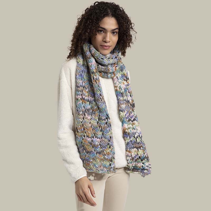 Deze sjaal met zigzag motief breien is een ontspannen project wat je maakt met het Lang Yarns Bold Color breipakket. De leuke kleuren mix van het garen geeft een verrassend effect aan de sjaal, zeker met dit eenvoudige ajour motief. De sjaal wordt ca. 190 x 30 cm en omdat je het met naalden 12 breit ben je lekker snel klaar.