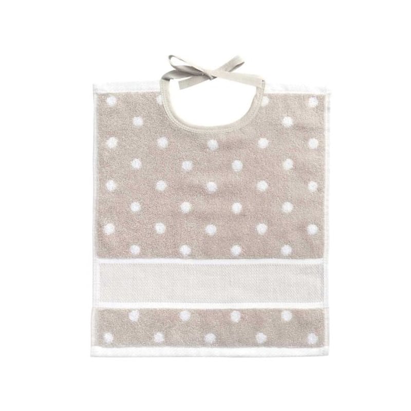 Slabbetje met borduurrand - beige met stippen Rico Design