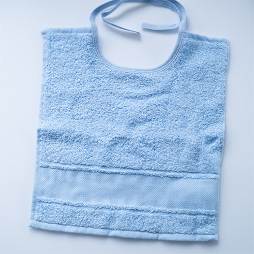 Een mooi badstof slabbetje met borduurand van aïda stof. Netjes afgewerkt gewoon te wassen in de wasmachine. Perfect om een leuk kraamcadeautje te borduren.