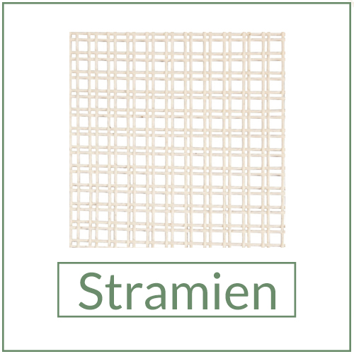 Het knopen op stramien is een oude techniek die weer helemaal trendy is. En dat is logisch omdat het altijd een mooi resultaat heeft en geschikt voor zowel kinderen als volwassenen. Door de lengte van de draadjes en gebruik van de Gregoriaanse knoop, blijven de draden rechtop staan. Het stramien lijkt op een borduurondergrond en heeft een ruitjespatroon (de mazen). Stramien is van stevig en slijtvast materiaal.