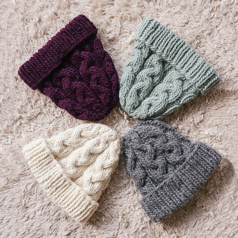 Laten we eerst eens kijken naar de kleine snelle projecten. Wij denken dan in deze tijd van het jaar gelijk aan een warme muts. Die kan iedereen gebruiken, kun je in allerlei kleuren en motieven maken en met verschillende technieken, zodat het toch leuk is om te breien.