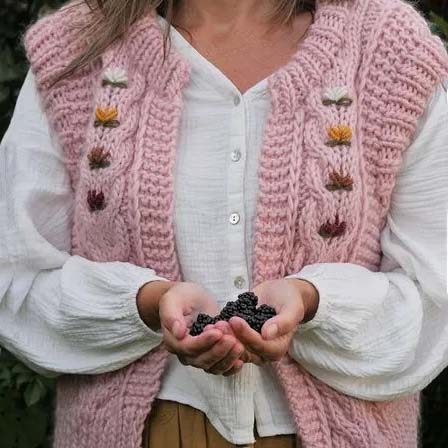 Zo breide zij voor collega Eva dit roze korte vest van de Lang Yarns Bold en het heerlijk warme giletje Hildegard van het lont garen Borgo de Pazzi Luna. Je zou het niet zeggen, maar het vest was in één weekend klaar net als het Hildgard gilet.