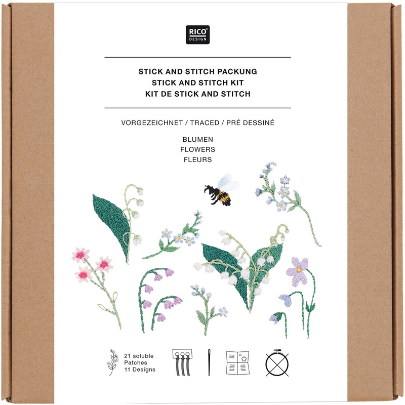 Stick en Stitch bloemen borduurpakket - Rico Design oplosbare borduurpatronen