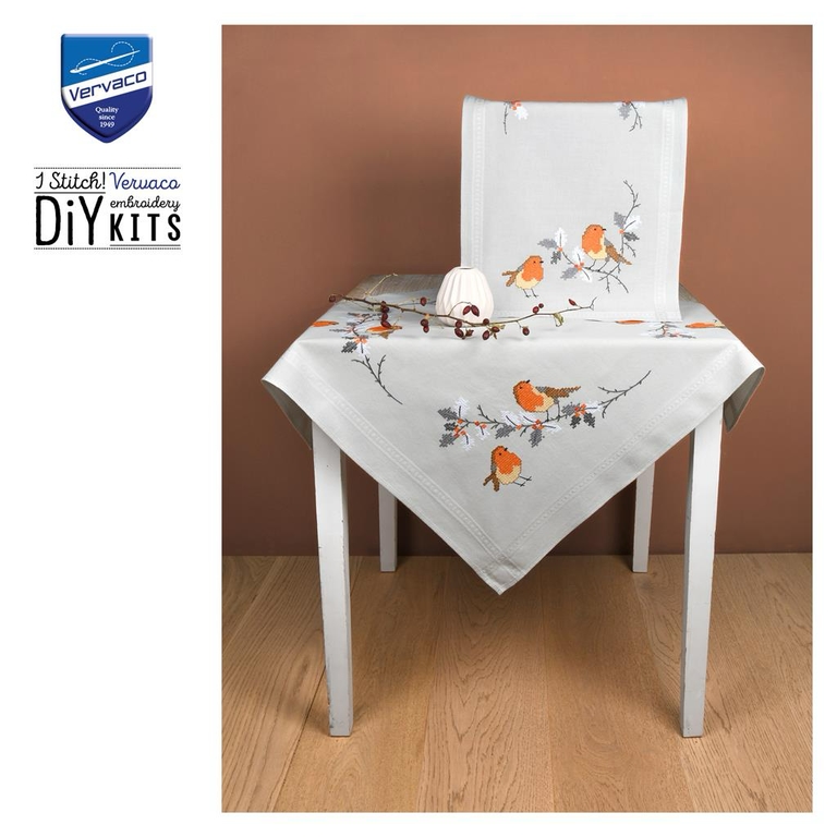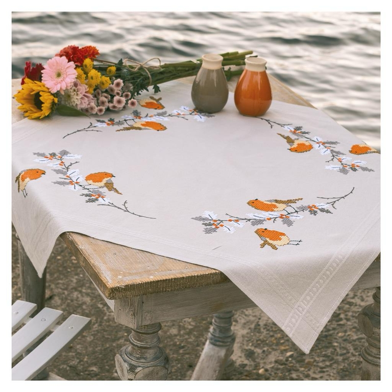 Tafelkleed roodborstjes borduren - Vervaco borduurpakket