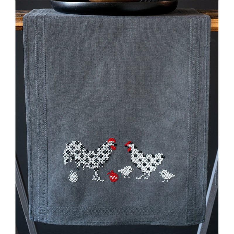 Tafelloper Haan en Kip borduren - Vervaco borduurpakket