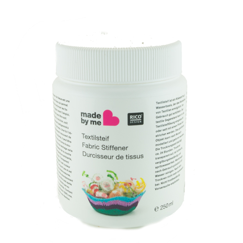 Met deze lijm, textielversteviger van Rico Design, op waterbasis kun je textiel verstevigen en daardoor ontstaan veel ideeën voor nieuwe ontwerpen. De stof kan worden gedompeld of kan worden behandeld met een kwast. Nadat deze volledig is voorzien van het textielversteviger van Rico Design, kan het object naar wens worden gevormd en gemodelleerd. De droogtijd hangt af van de laagdikte en kamertemperatuur gedurende ongeveer 24 uur. Daarna is je project klaar voor gebruik!