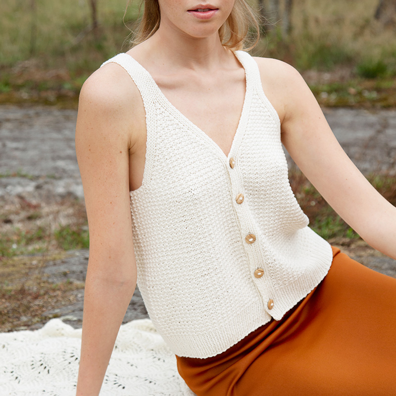 Dit topje met knoopsluiting breien doe je met het Novita Woolly Wood breipakket. Gebreid met het 100% natuurlijke garen Novita Woolly Wood heb je een heerlijk model wat luchtig is, soepel valt en is zacht voor de gevoelige huid. De mix van merino met tencel is perfect voor het voorjaar en de zomer.