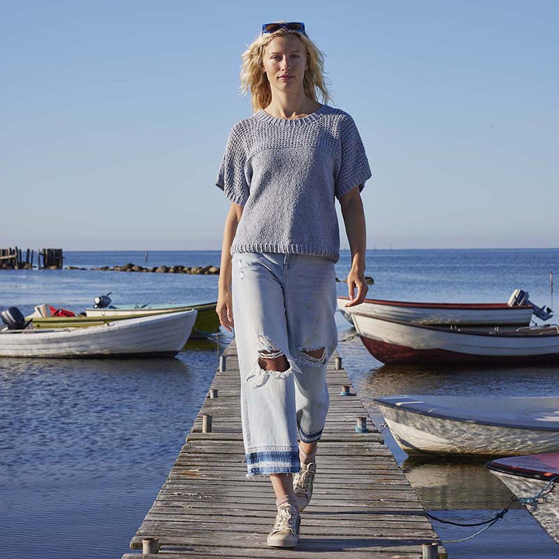 Het zomershirt op de foto is gebreid met kleur 33. Wil je een andere kleur? Klik dan op Lang Yarns Cotton Tweed, kies je kleur en geef het kleurnummer door in het opmerkingen vak aan het eind van je bestelling.