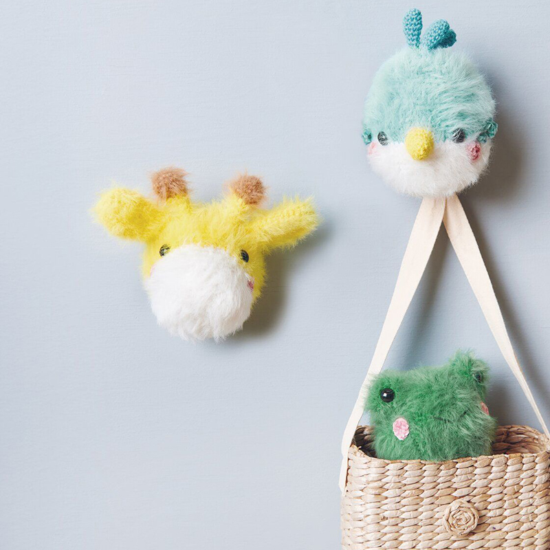 Met dit haakpakket haak je het hoofd van een knuffel giraffe die op kunt hangen als decoratie in de baby of kinderkamer. Helemaal leuk is als je er een baby-muziekdoosje van maakt. Je haakt dan gewoon het hoofd, plaatst er een muziekdoosje met trekkoord in en vult het op. Maak een koord je aan het hoofd en je hebt een leuk item voor de kinderkamer óf als kraamcadeautje.