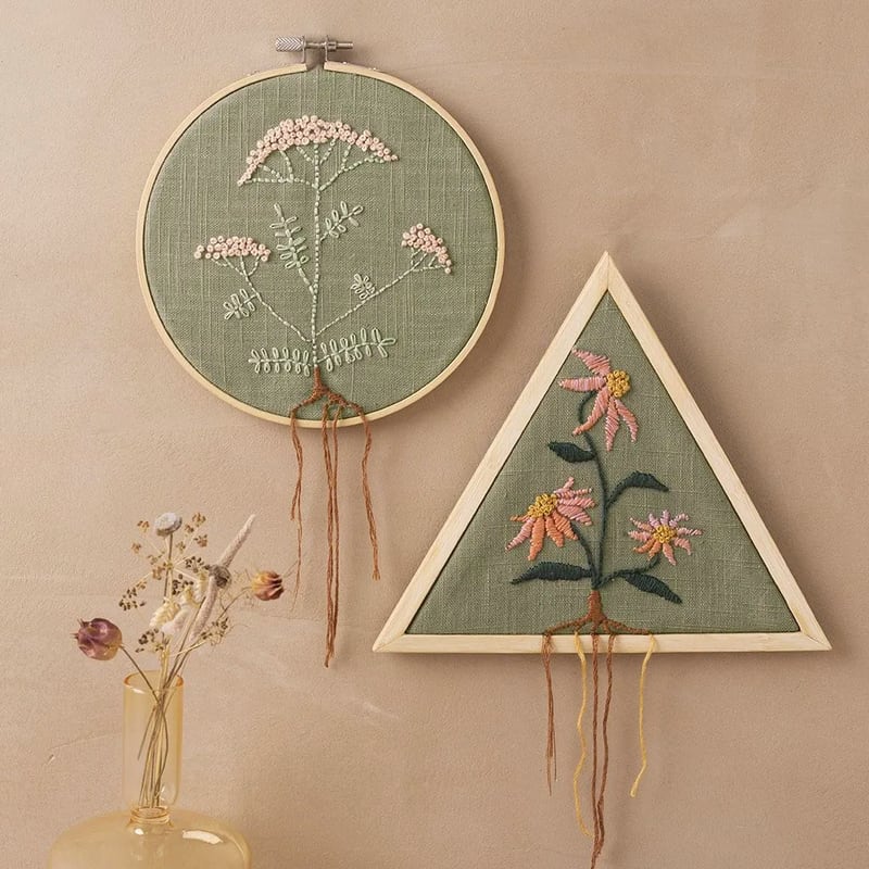 Met dit borduurpakket kan je in een handomdraai eigen wandhanger met bloemmotief borduren.