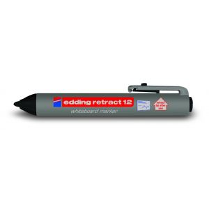 De Retract 12 Whiteboard Marker van Edding heeft een ronde punt en een drukmechanisme voor eenvoudige bediening met één hand. Met permanente, reukarme inkt. De retract 12 marker heeft geen dop. De punt wordt simpelweg uitgeschoven door te drukken op de drukknop en door het optillen van de clip weer ingetrokken. Dankzij de nieuwe afdichtingstechniek droogt de marker niet uit.