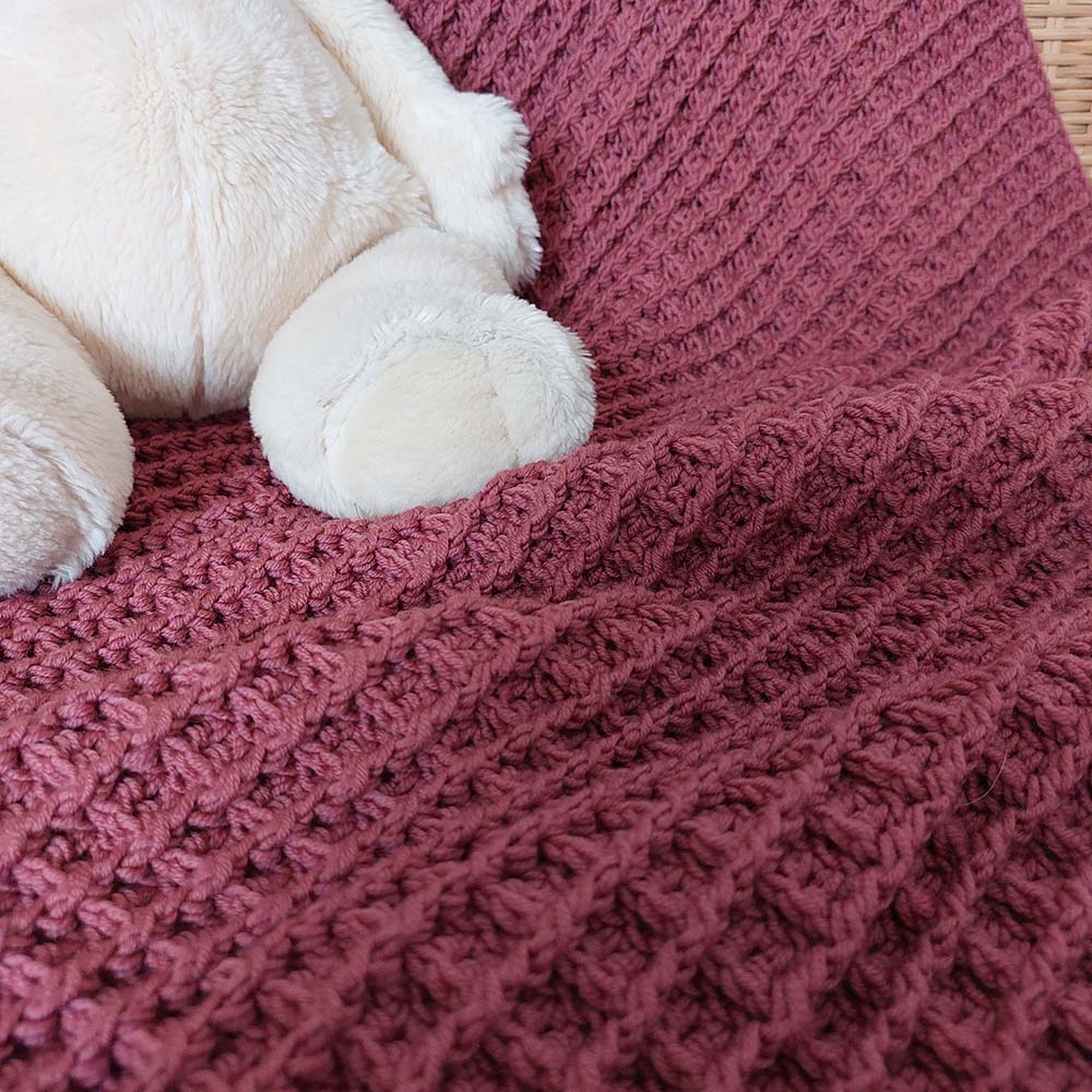 Dit mooie wafeldekentje is geschikt om te gebruiken als wiegdekentje, kinderwagen dekentje en als babydekentje voor in de box óf voor onderweg. Dit speciale project vraagt een extra zacht garen, daarom kiezen wij voor het garen Lang Yarns Merino 120. Met als resultaat dat het wiegdekentje Sam heerlijk zacht en soepel is.