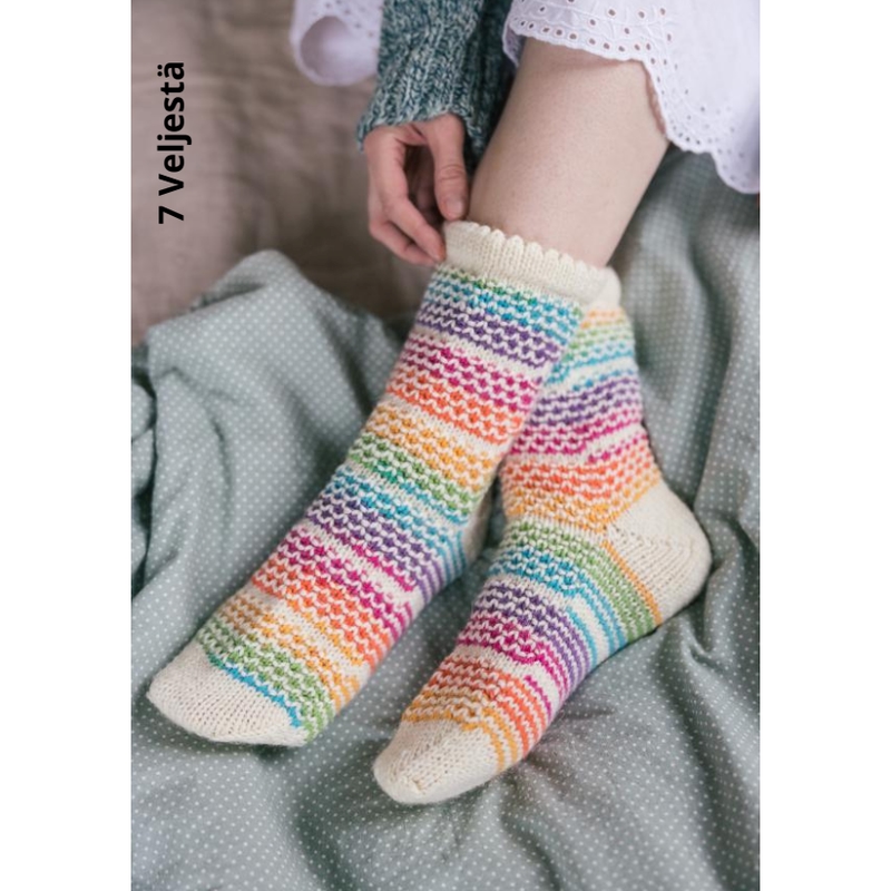 De sokken worden gebreid met de prachtige sokkenwol van Novita zoals de 7 Veljesta, 7 Veljesta Raita, Viola en de Nalle. Bestel meteen het garen mee zodat je direct kunt beginnen! Voor de meeste patronen heb je voor 1 paar sokken 2 à 3 bollen nodig, voor sokken met hogere boorden of tot de knie 4 à 5.