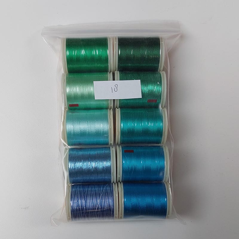 Wonderfil set 18 heeft 10 klosjes naaigaren in verschillende kleuren die mooi op elkaar zijn afgestemd. Het is een 100% rayon garen met een dikte van 40 wt. Het glansgaren is geschikt voor naaien, quilten, decoratieve stiksels en het borduren van kaarten. Het Wonderfil garen heeft een levendige glans, is kleurecht en wasbaar in de wasmachine.