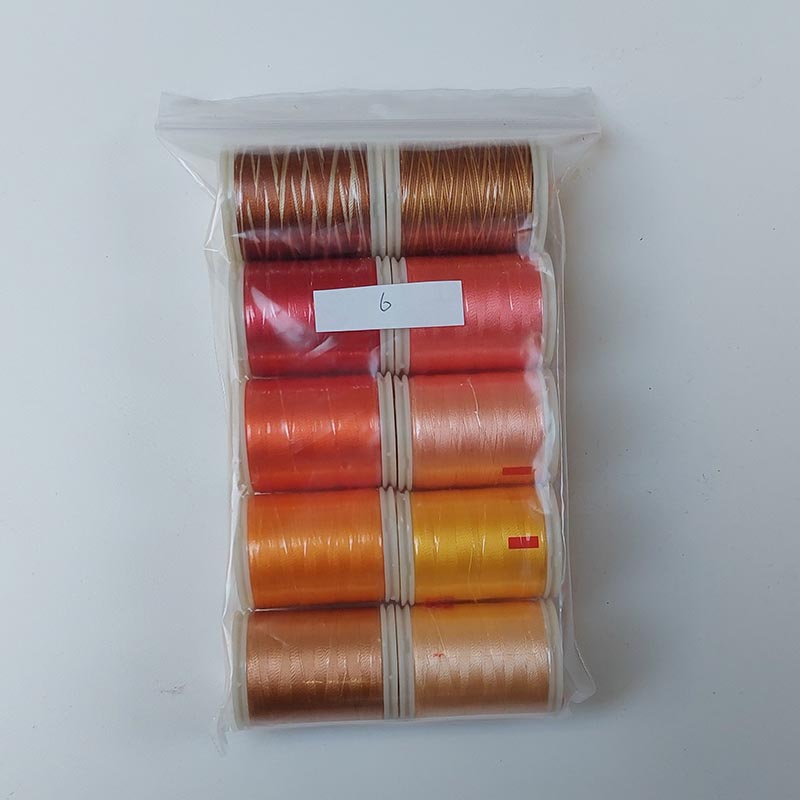 Wonderfil set 6 heeft 10 klosjes naaigaren in verschillende kleuren die mooi op elkaar zijn afgestemd. Het is een 100% rayon garen met een dikte van 40 wt. Het glansgaren is geschikt voor naaien, quilten, decoratieve stiksels en het borduren van kaarten. Het Wonderfil garen heeft een levendige glans, is kleurecht en wasbaar in de wasmachine.