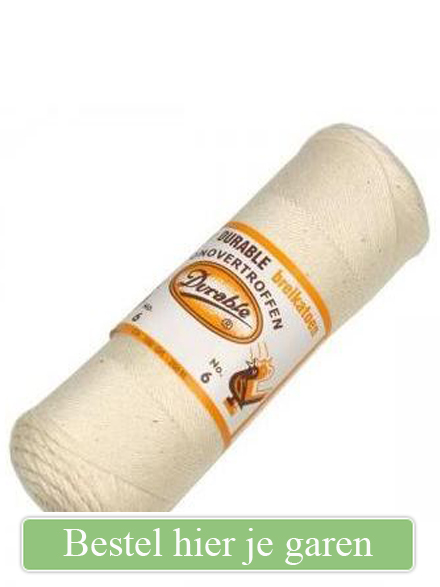 Per netje hebben wij ca. 20 gram garen gebruikt. Dat betekend dat je uit 1 bol Durable 12 ongebleekte breikatoen, 5 groente- en fruit netjes kunt haken. Zo heb je voldoende netjes om je wekelijkse voorraad groent en fruit in mee te nemen.