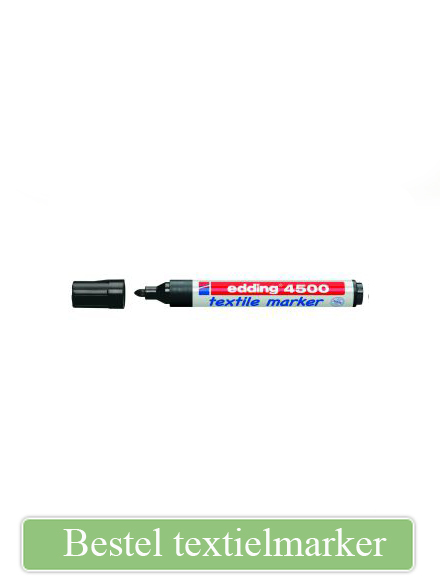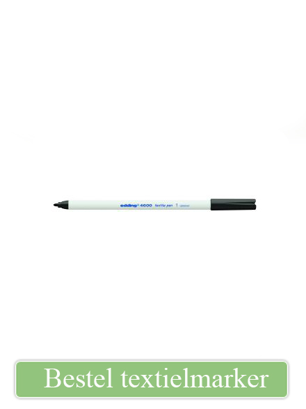 Speld de afdruk vast om schuiven te voorkomen en trek de afbeeldingen en tekst met de textielstiften over. Fixeer de print volgens de aanwijzingen op de textielstiften. En klaar!