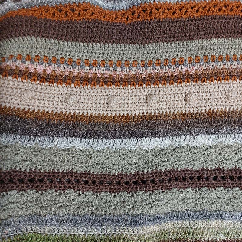 Het patroon is zo gemaakt dat alle gebruikte motiefjes en steken erin beschreven staan, alles op volgorde zoals het voorbeeld. De kleuren kun je gewoon zelf kiezen.
