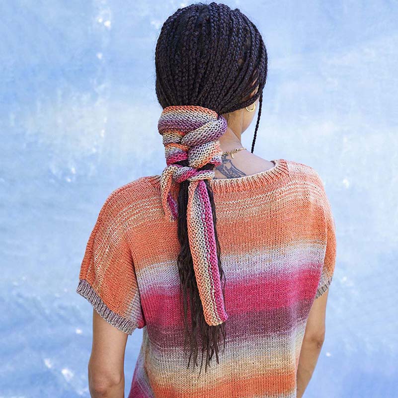 Zelf een zijden korte mouwen shirt breien doe je met het Lang Yarns Silk Color breipakket. Door het kleurverloop van het garen ontstaat er vanzelf een mooi streeppatroon. Je breit deze dames top van onder naar boven, waarbij je het onderste deel rondbreit tot aan de armsgaten. Daarna brei je de voor- en achterkant los van elkaar verder. Zo hoef je alleen de schoudernaden te sluiten als je klaar bent.