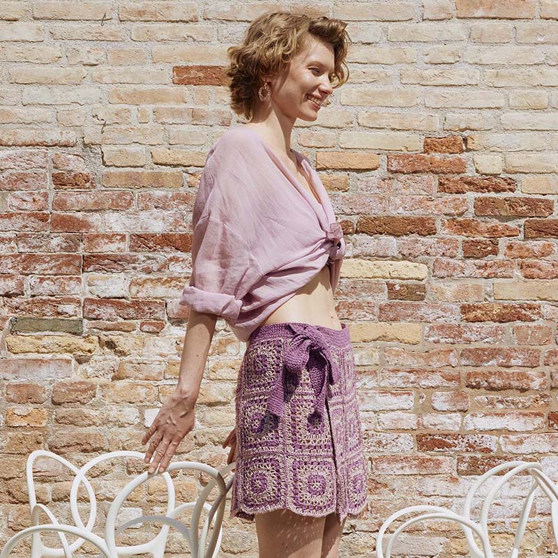 Dit leuke zomerrokje haak je met grannys in 2 kleuren. Het is een overslagrokje waardoor het een trendy look heeft en comfortabel draagt. Het wordt gehaakt met het zomer garen Wooladdicts Pride. Een mix van katoen met linnen. De kleurcombinatie is perfect en helemaal van dit seizoen.