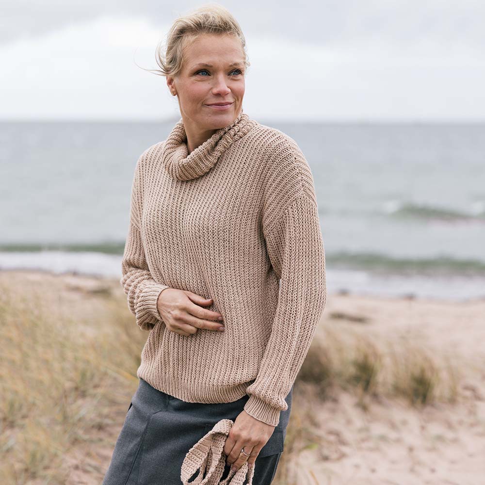Zomertrui Dyni wordt met een halve patentsteek gebreid. Zo wordt het een tijdloos model waar je jaren van geniet. Het heeft een ruime col waardoor deze zomertrui perfect is voor de koele zomeravond. En heb je het niet zo snel koud, dan kun je de trui ook in het voor en najaar dragen.