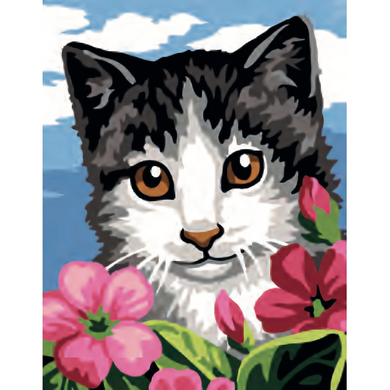 Zwart-wit poesje borduren- voorbedrukt borduurpakket beginner
